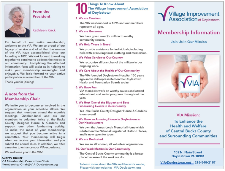 Mail your completed application form and a check for $50, payable to “VIA of Doylestown,” to the address below.:
