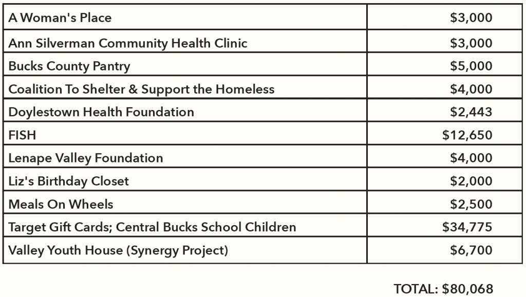 This year the Community Outreach Committee distributed a total of $80,068 for community needs.